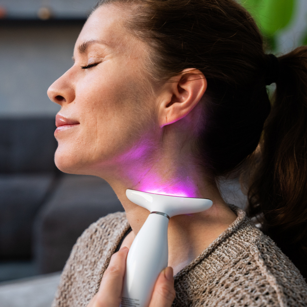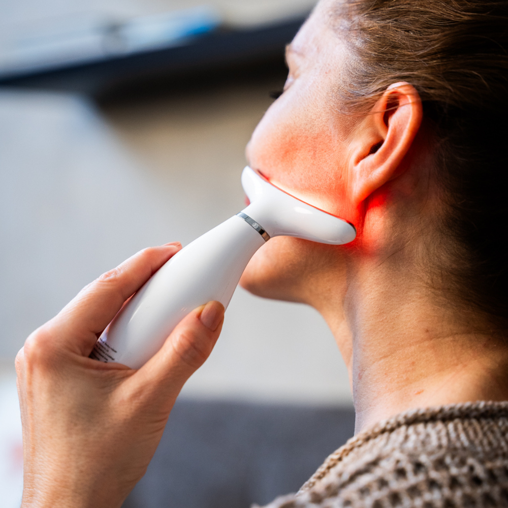 Rødt LED-lys aktiverer hudens naturlige kollagenproduktion for at mindske fine linjer.